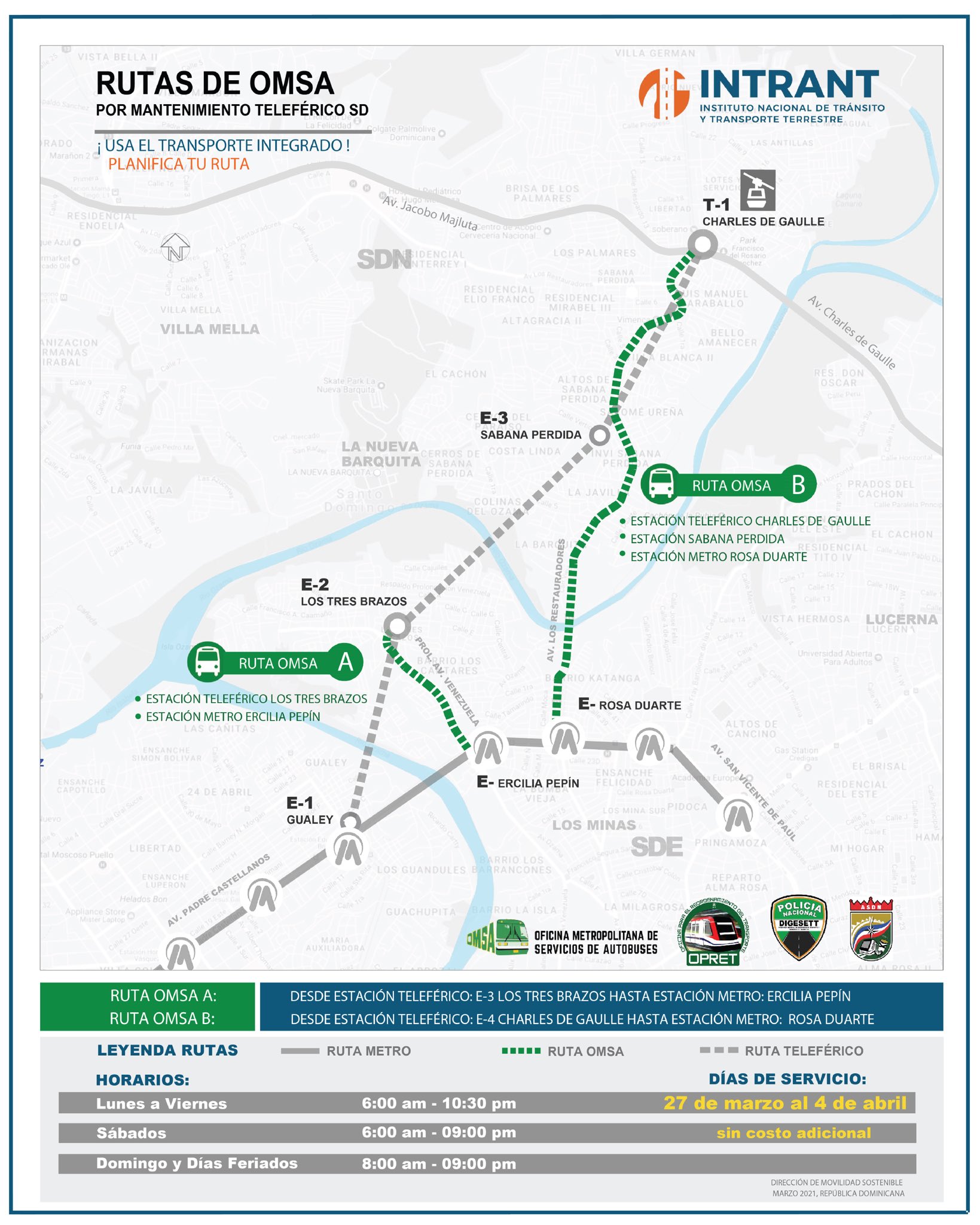 Instituto Nacional De Transito Y Transporte On Twitter Rutas Provisionales De Omsa Rd Por Mantenimiento Del Telefericosd Del 27 De Marzo Al 4 De Abril 2021 Esta Alternativa De Transporte Sera Sin